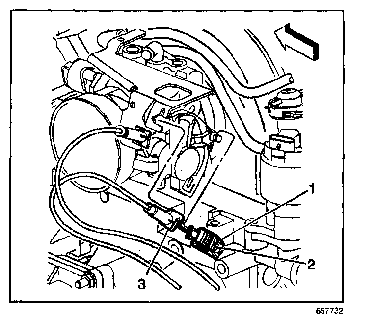 4. Connect the cruise control cable retainer (3) to the throttle body bracket.
