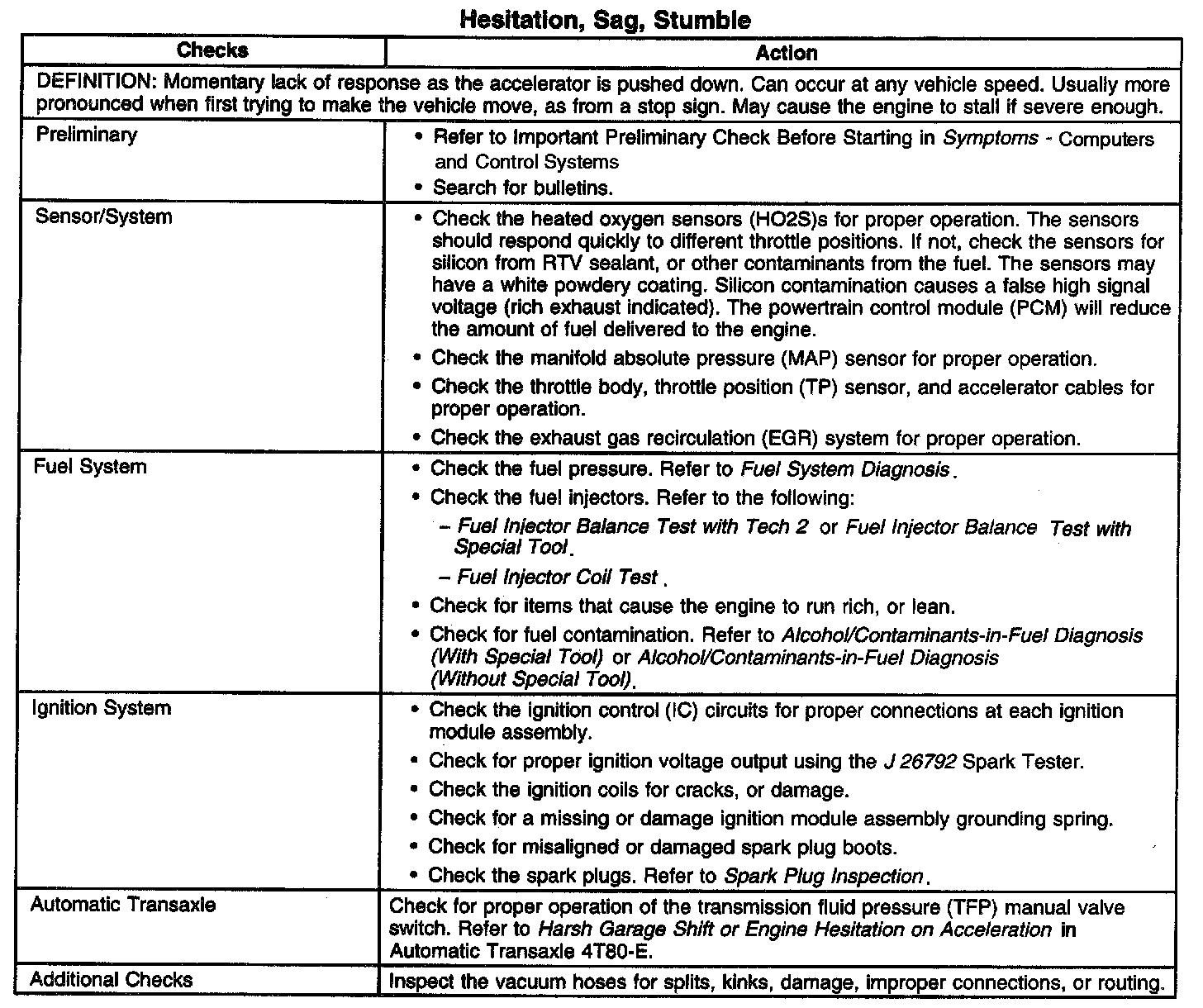 Hesitation, Sag or Stumble
