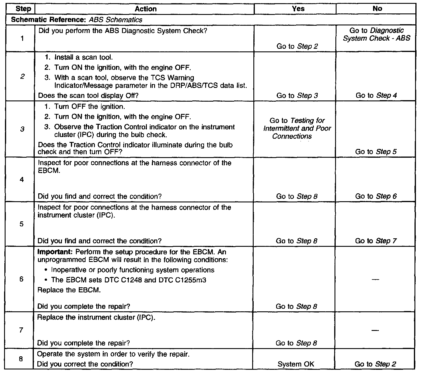 The numbers below refer to the step numbers on the diagnostic table.