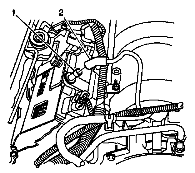12. Position the engine coolant heater wire (1) or to the fuel rail studs (if equipped).