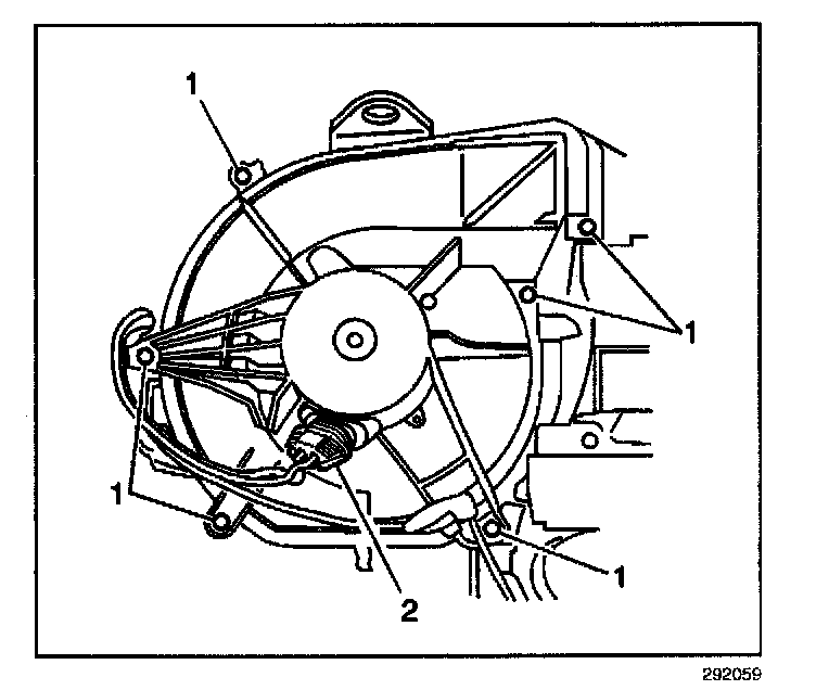 8. Remove the blower motor retaining fasteners (1).