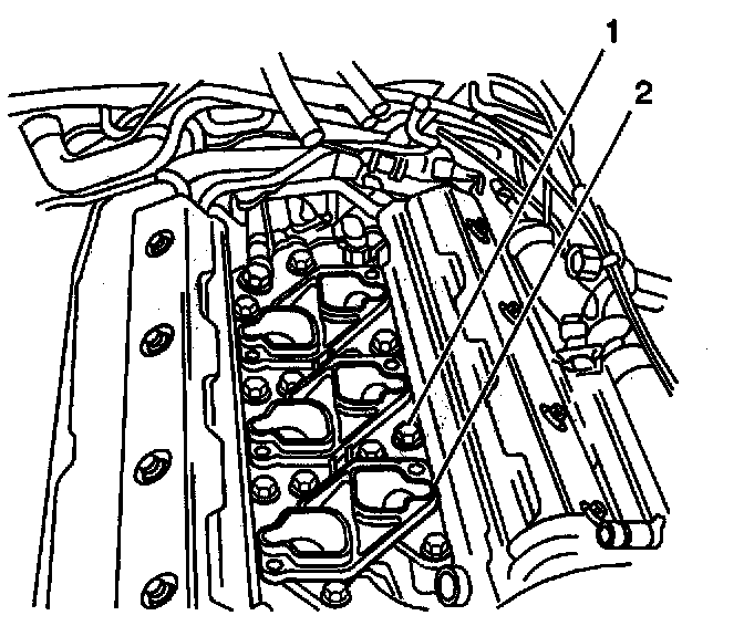3. Remove the intake manifold flange (2) from the cylinder heads.