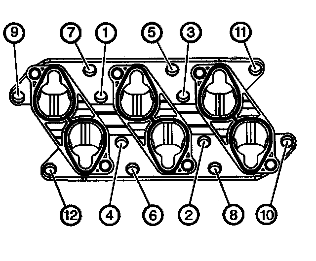 Tighten the intake manifold flange bolts in sequence to 20 Nm (15 ft. lbs.).