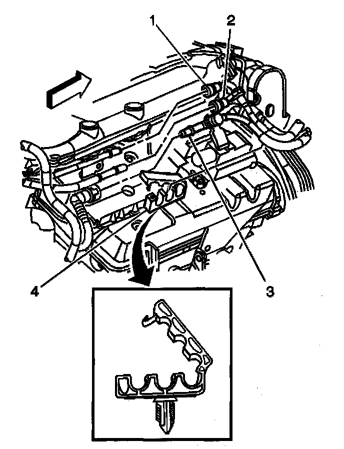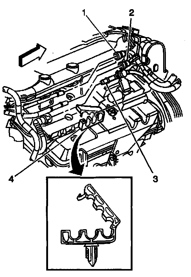 3. Refer to Quick Connect Fitting(s) Service (Metal Collar) in order to disconnect the following quick connect fittings from the fuel rail: