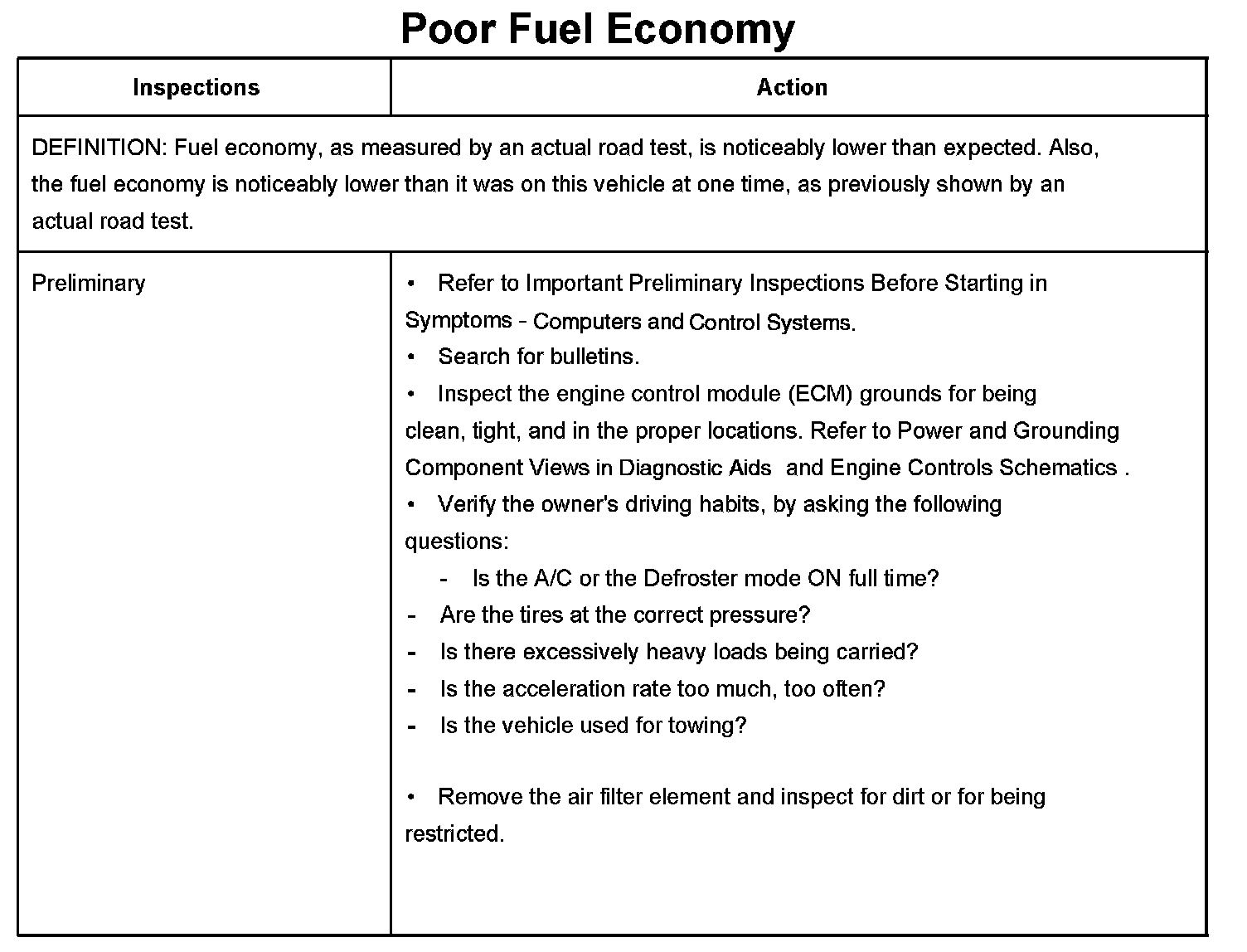 Poor Fuel Economy