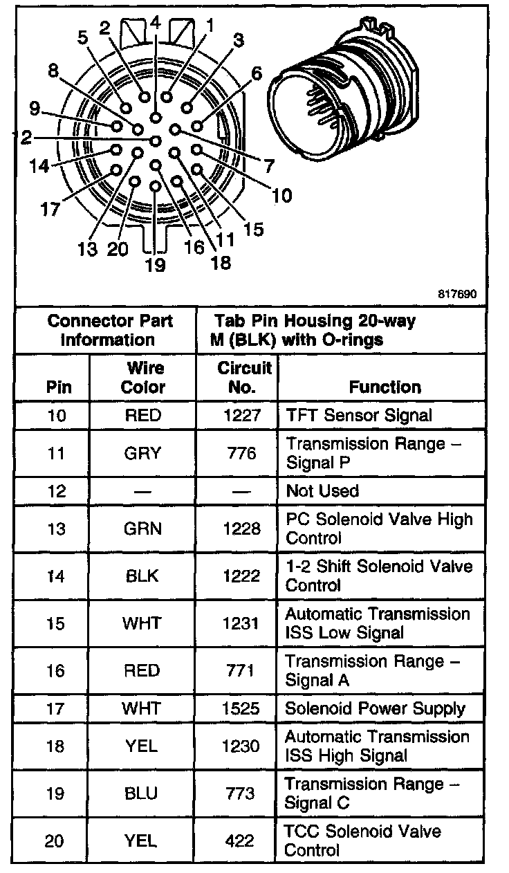 A/T Inline Harness 20-Way Connector, Transmission Side
