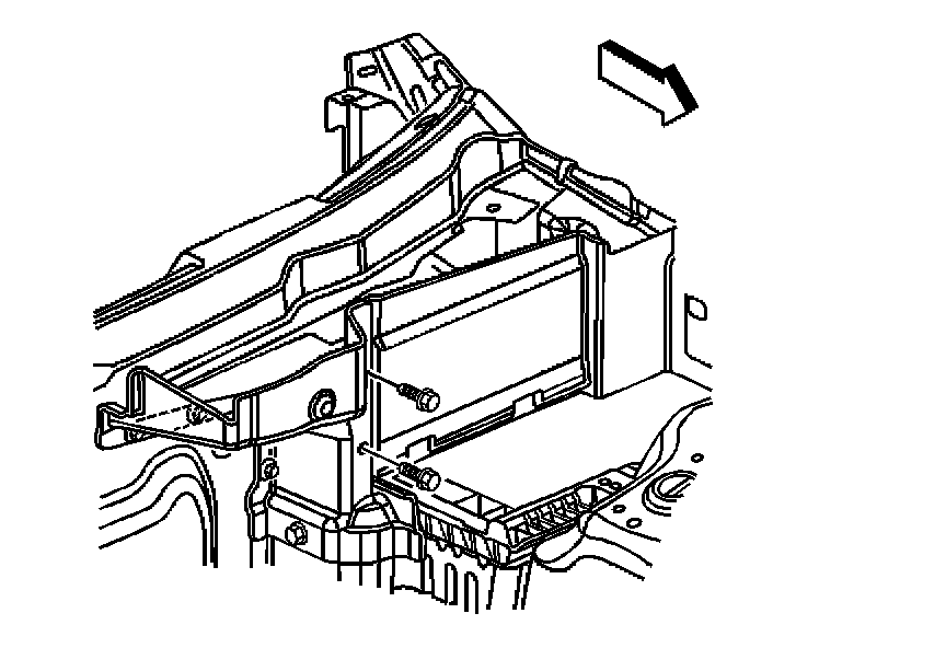 3. Remove the 2 bolts securing the front air inlet panel assembly to the battery tray.