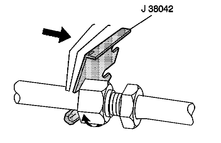 2. Loosen the discharge hose to evaporator inlet fitting using the J 38042.