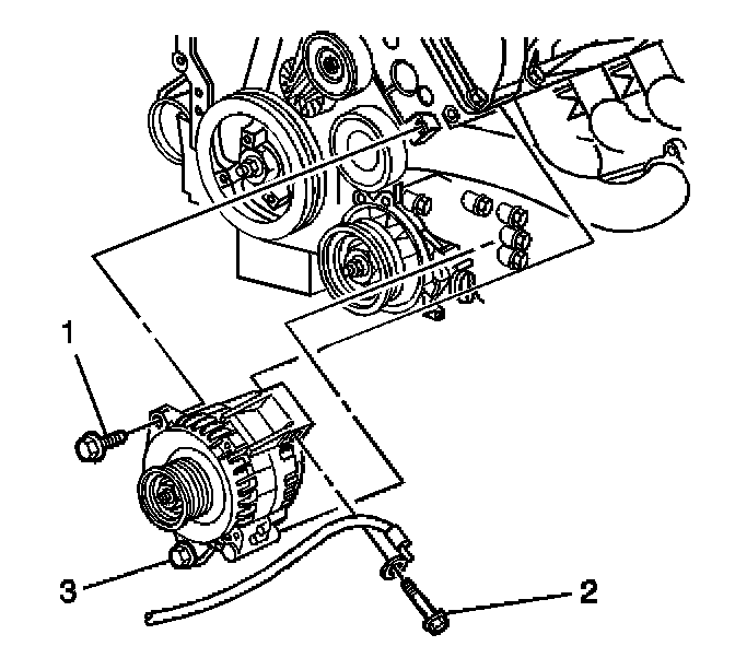 7. Loosen the lower generator bolt (3).
