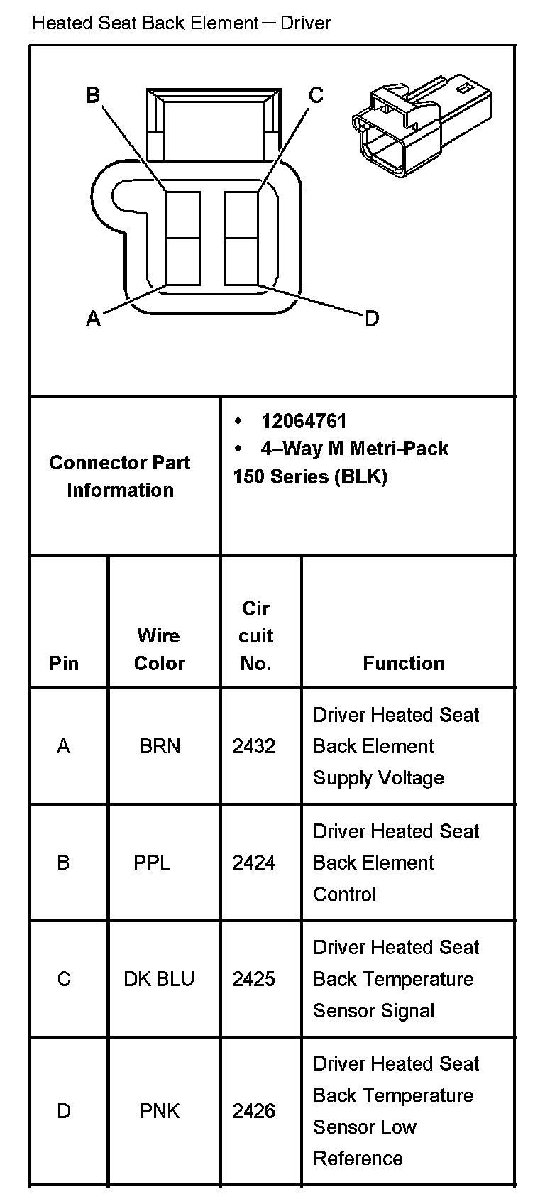 Heated Seat Back Element - Driver: