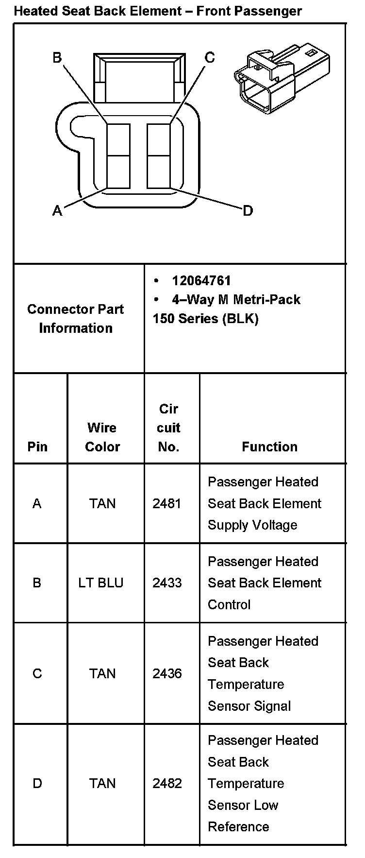 Heated Seat Back Element - Front Passenger: