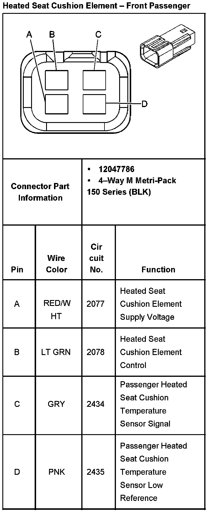Heated Seat Cushion Element - Front Passenger: