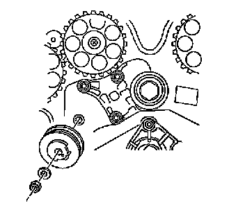2. Remove the timing belt tensioner locking nut, washer and pulley.