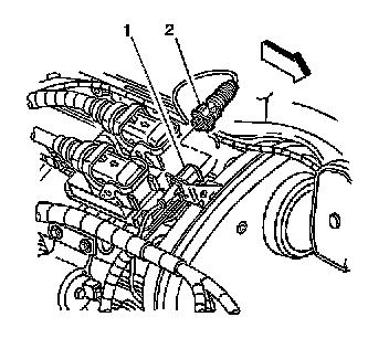 3. Disconnect the knock sensor pigtail (1) from the bracket.