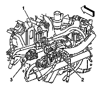 3. Refer to Quick Connect Fitting(s) Service (Metal Collar) in order to disconnect the following quick connect fittings from the fuel rail:
