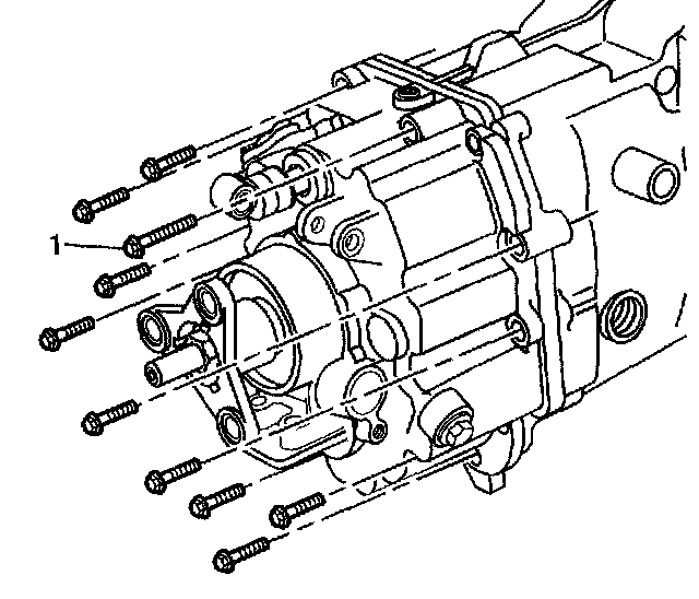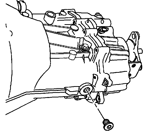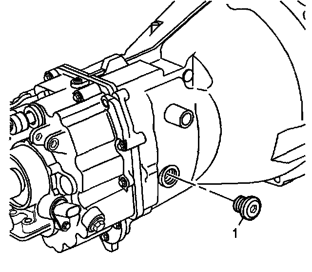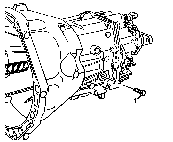 9. Remove the reverse idler gear front retaining bolt (1) on the left side of the transmission.