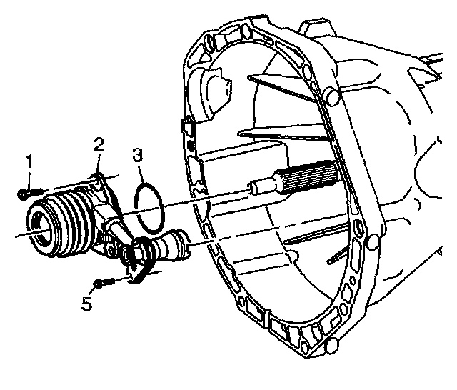 4. Remove the CSC assembly (2), attaching bolts (1), quick disconnect attaching bolt (5) and O-ring (3).