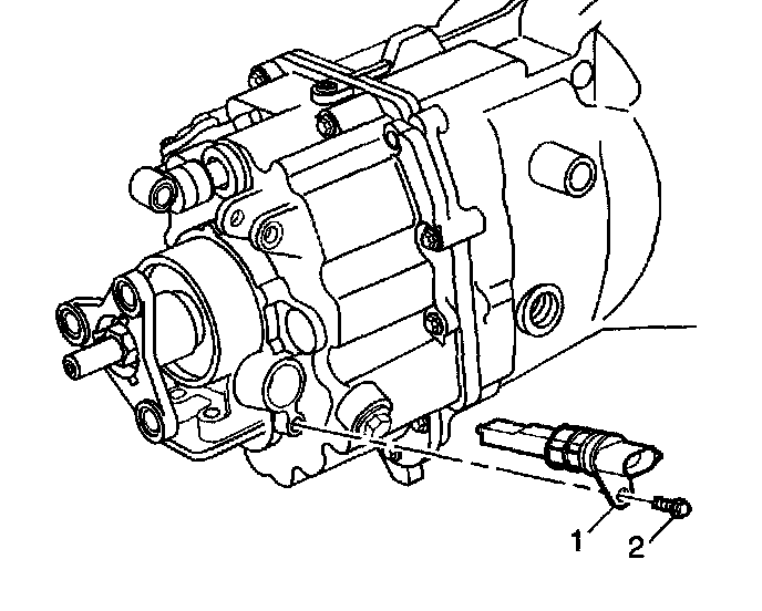 5. Remove the speed sensor bolt (2) and sensor (1).