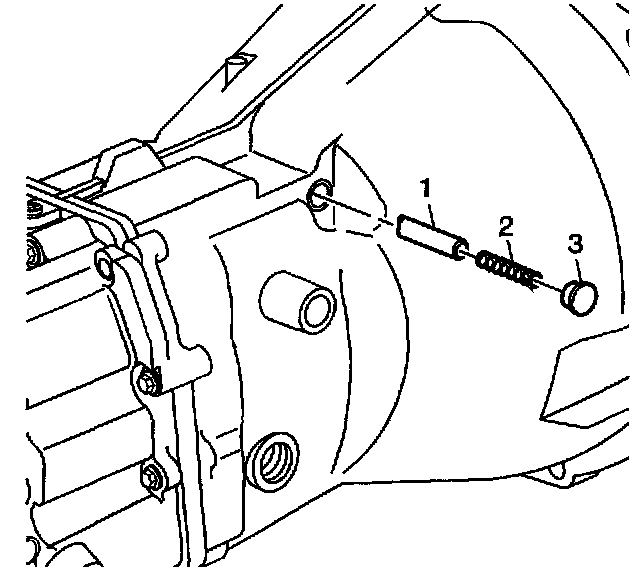 8. Remove the detent plug (3), spring (2) and detent pin (1), from the front section of the transmission case.