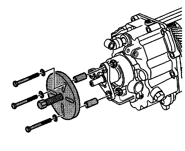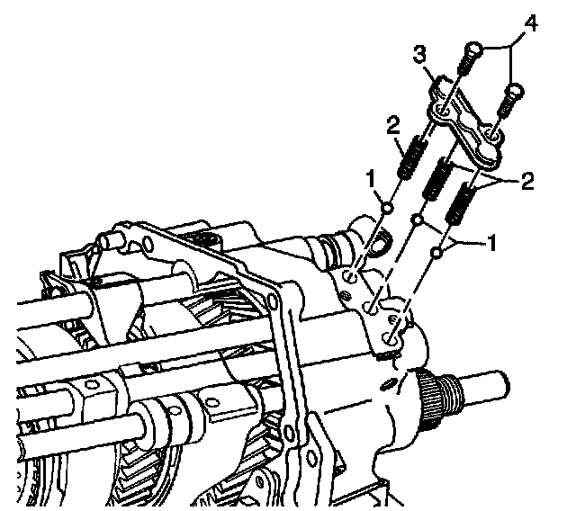18. Remove the bolts (4) from the spring plate (3) on the transmission rear section.