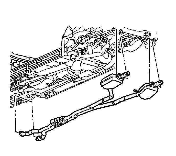 9. With the aid of an assistant, lower the exhaust system.