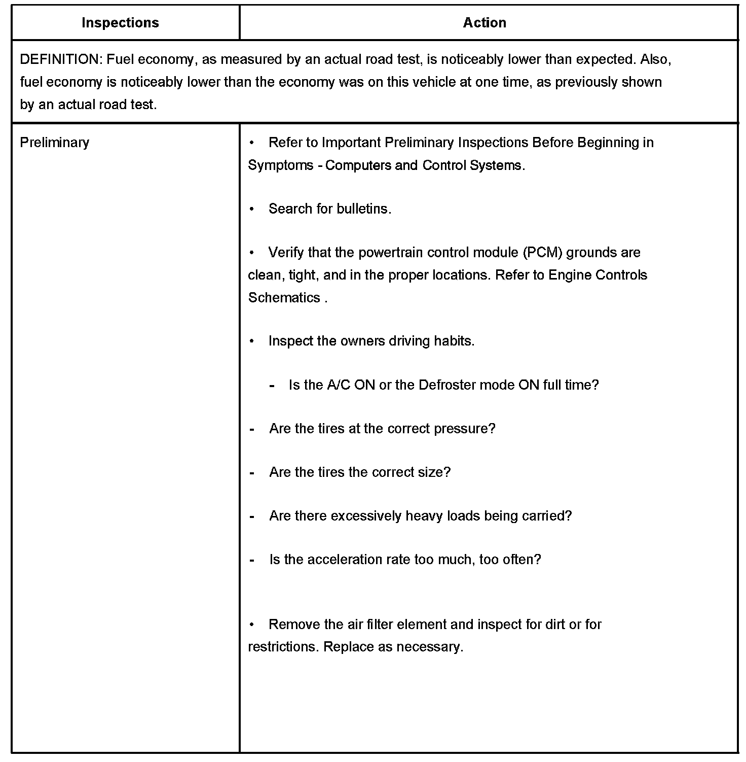 Poor Fuel Economy