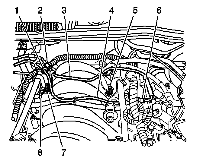 4. Remove the engine compartment fuel line (3).