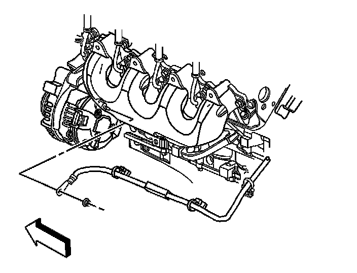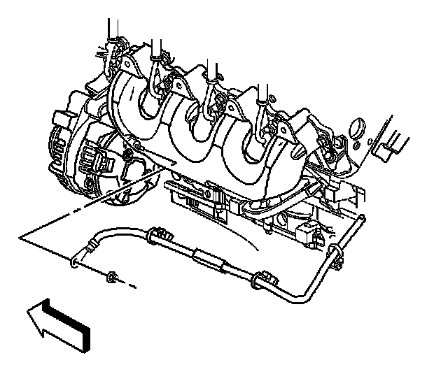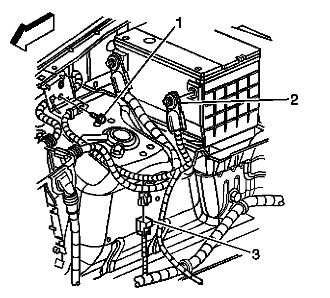 11. Remove the positive battery cable from the retaining features on the engine block.