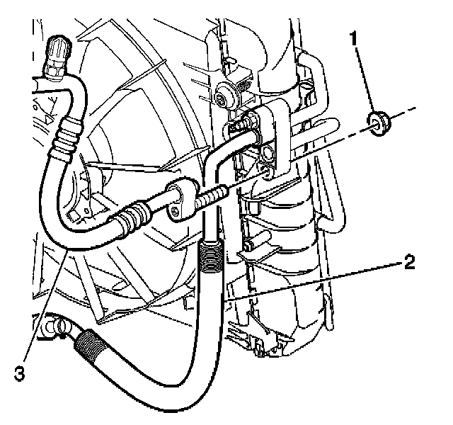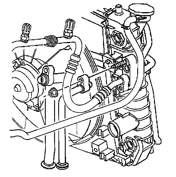 8. Remove and discard the sealing washers from the discharge hose and the evaporator hose.