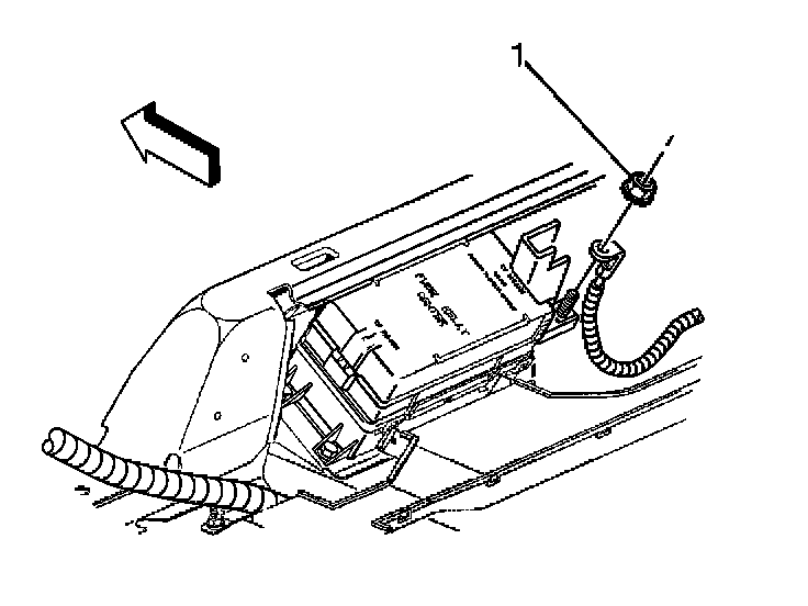 3. Remove the nut (1) securing the battery positive cable to the rear fuse block.