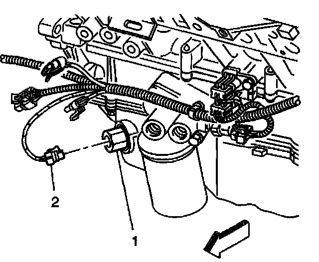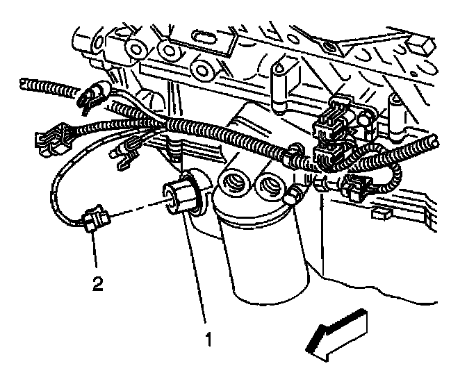 3. Disconnect the electrical connector (2) from the engine oil level sensor (1).
