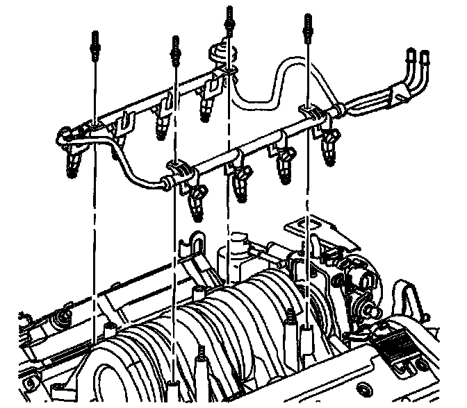 ^ Tighten the fuel rail studs to 9 Nm (80 inch lbs.).