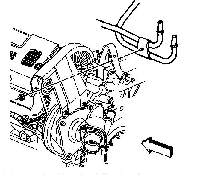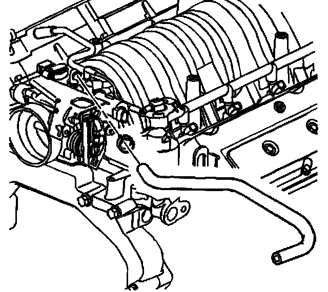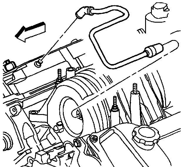13. Install the PCV fresh air feed tube to the camshaft cover and the water crossover.