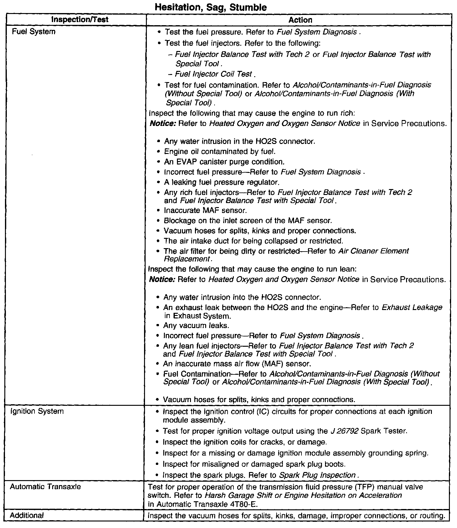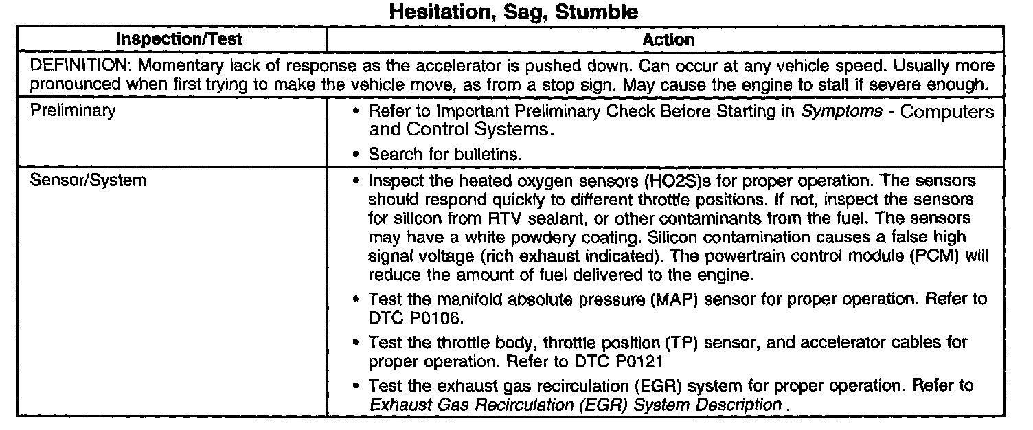 Hesitation, Sag or Stumble