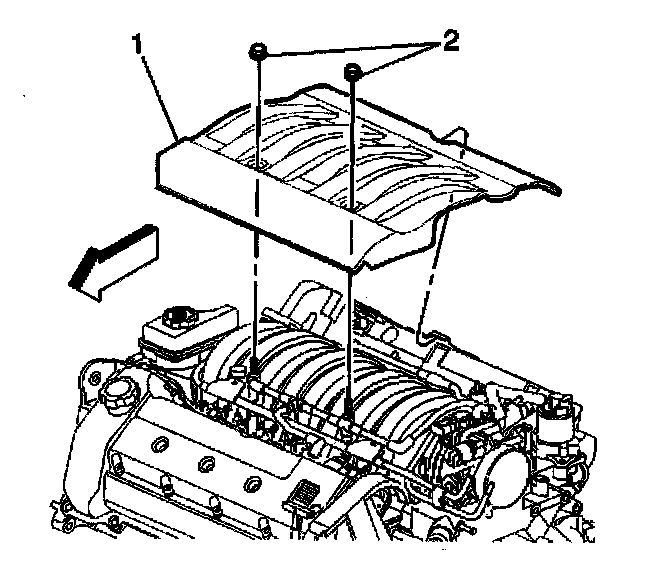 1. Remove the two nuts (2) from the fuel injector sight shield (1).