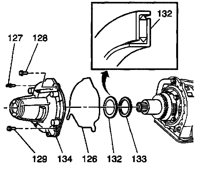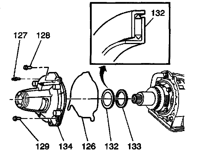 10. Remove the roller thrust bearing (132) and the selective washer (133).