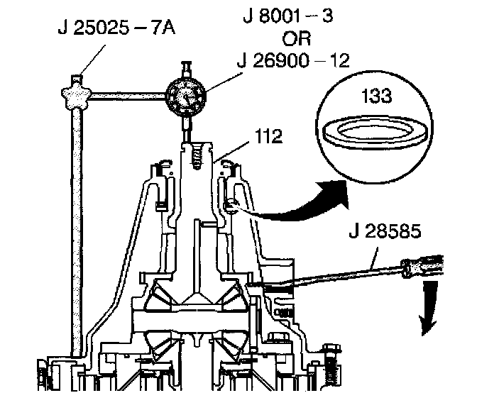 11. Position the dial indicator with the stem contacting the output shaft (112). Set the dial indicator to zero.