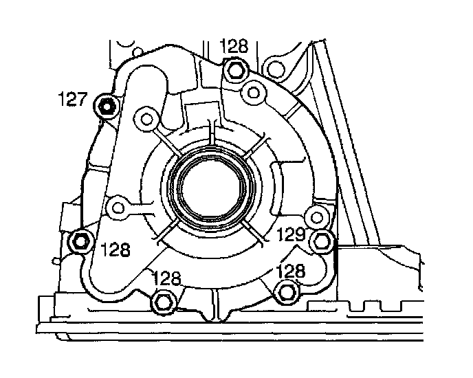 8. Apply pipe thread sealant GM P/N 12346004 to bolt threads before installation. Install the case extension bolts (128, 129).