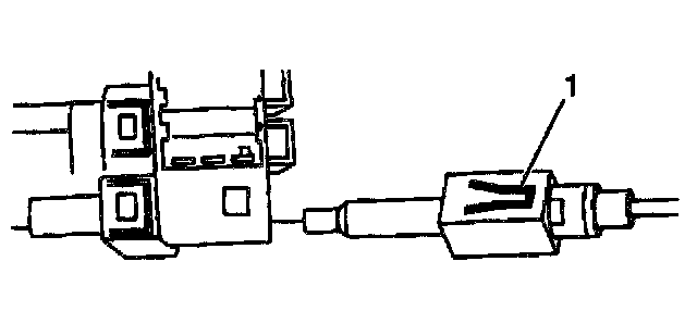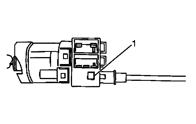 8. Depress the locking tab (1) on the cable and pull the cable out of the back of the ignition switch. The locking tab is located on the bottom of the ignition switch facing in the 6 o'clock position