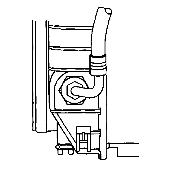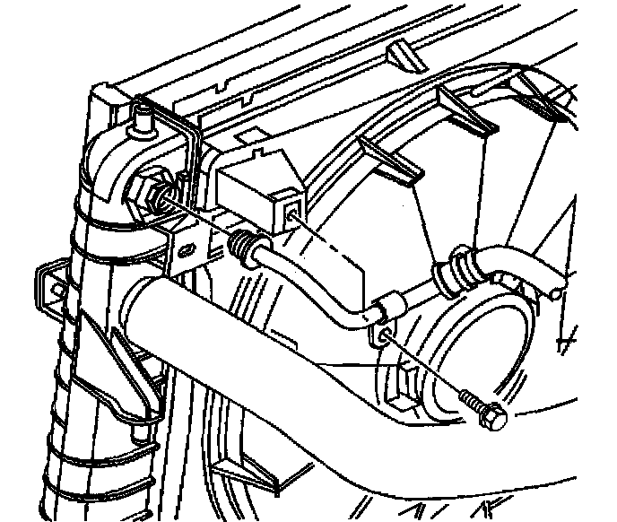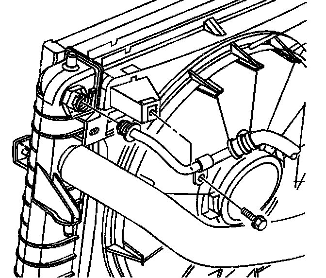 17. Install the upper transaxle oil cooler pipe retaining bolt to the fan shroud.