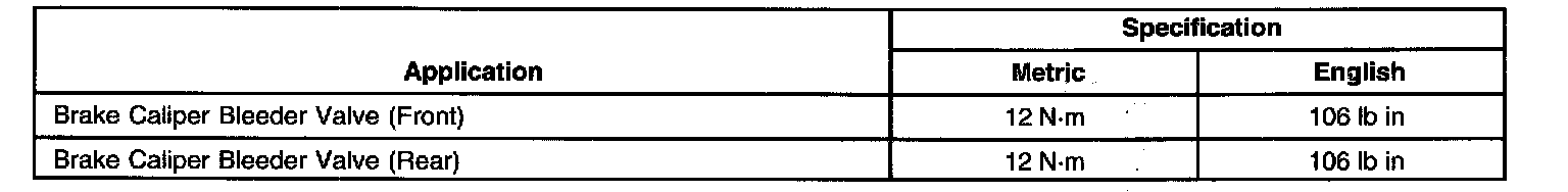 Brake Component Specifications