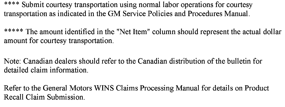 The General Motors Courtesy Transportation Program is intended to minimize customer inconvenience when a vehicle requires a repair that is covered by the New Vehicle Limited Warranty. The availability of courtesy transportation to customers whose vehicles are within the warranty coverage period and involved in a product recall is very important in maintaining customer satisfaction. Dealers are to ensure that these customers understand that shuttle service or some other form of courtesy transportation is available and will be provided at no charge. Dealers should refer to the General Motors Service Policies and Procedures Manual for courtesy transportation guidelines.