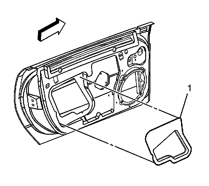 5. Remove the large water deflector (1) for inside access to the rear of the door.