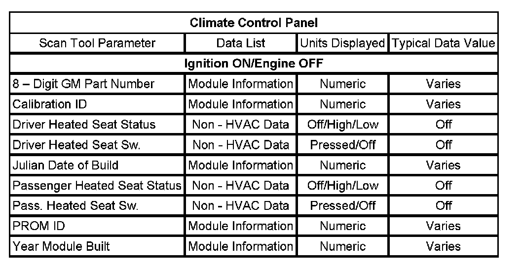 Scan Tool Data List