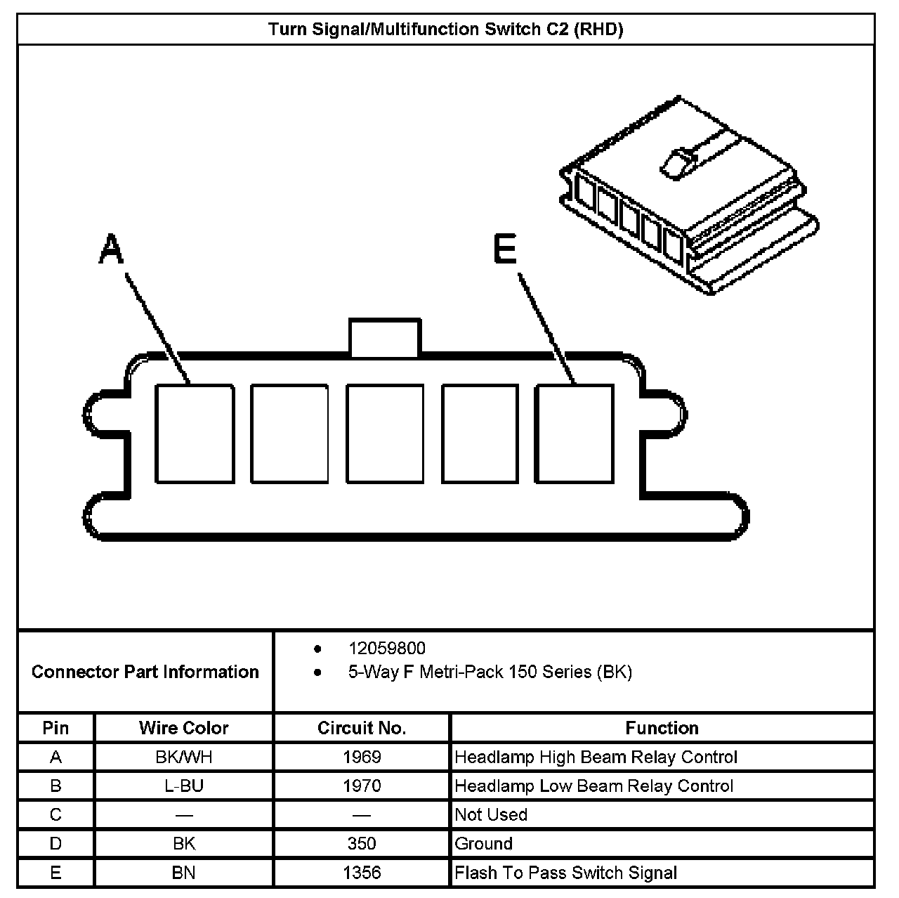 Turn Signal/Multifunction Switch C2 (RHD):