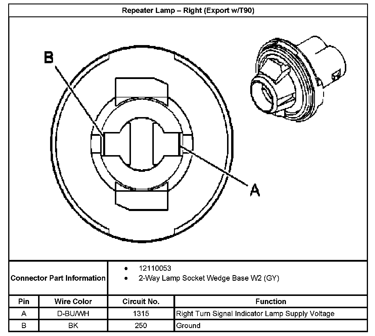 Repeater Lamp - Right (Export With RPO Code T90):