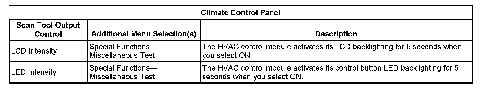 Scan Tool Output Controls - Climate Control Panel (CCP)