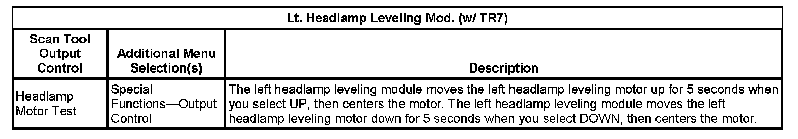 Scan Tool Output Controls - Left Headlamp Leveling Mod. (With RPO Code TR7)