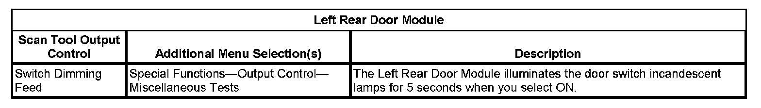 Scan Tool Output Controls - Left Rear Door Module (LRDM)
