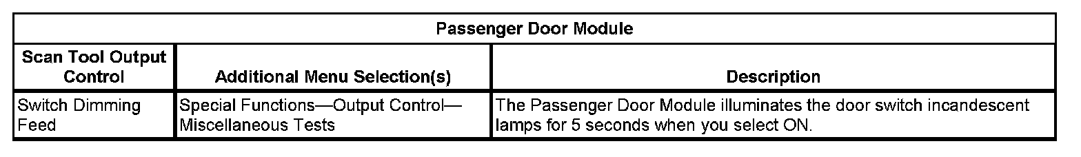 Scan Tool Output Controls - Passenger Door Module (PDM)